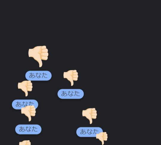 いつもの様に会社のweb会議に出席した際、ブラウザのバグなのかなんなのかマウスのカーソルの位置判定が表示されている座標と微妙にずれるバグが起きてマウスカーソルが自分の操作と違う挙動をする事にパニックになり、ひとまず仕切り直しをしようと退出ボタンを連打したらその表示判定も実際にクリックされた場所とずれている為に退出ボタンを押したつもりがブーイングの絵文字が一気に五個出た時は流石に終わったと思った。嘘みたいだけど本当の話です。